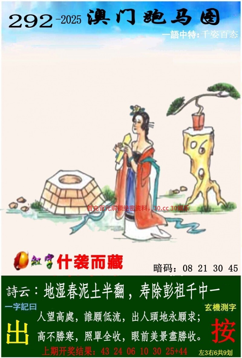 291期 43-24-06-10-30-25 T44 +05=1尾✓ |