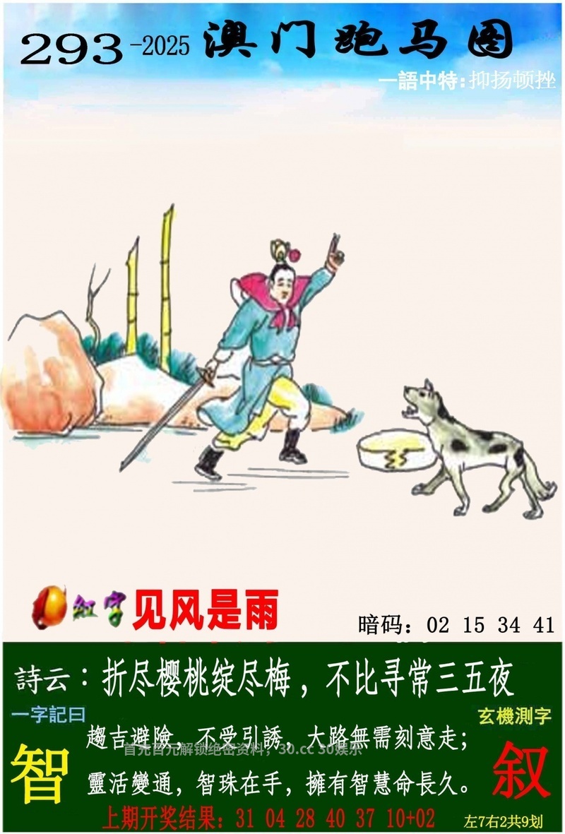293期九肖: 雨肖 | 必中⒓码: 13.25.24.23 |